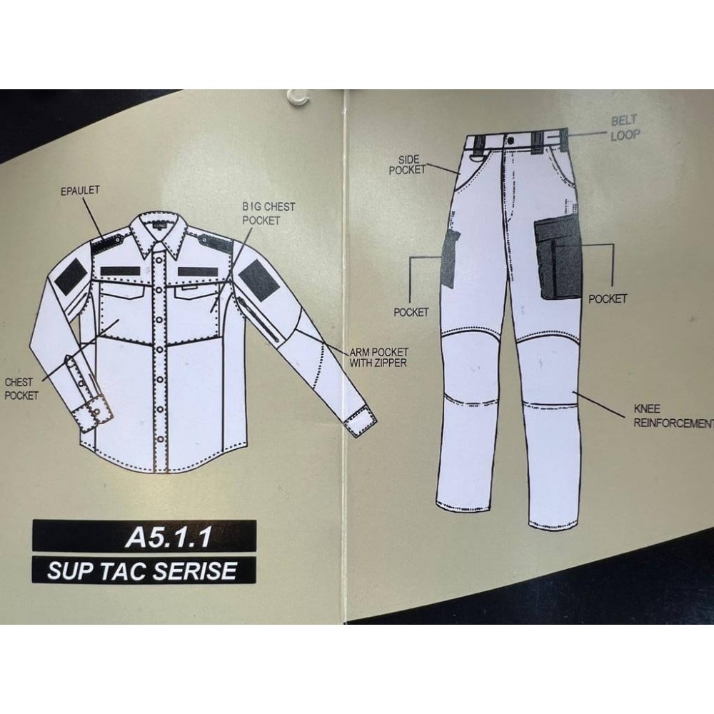 Костюм тактический А5.1.1 "Офицер" представляет собой универсальный камуфляжный комплект, разработанный как для повседневной носки, так и для использования в качестве военной формы во время военно-тактических операций. Он сочетает в себе функциональность, комфорт и эффективность маскировки.