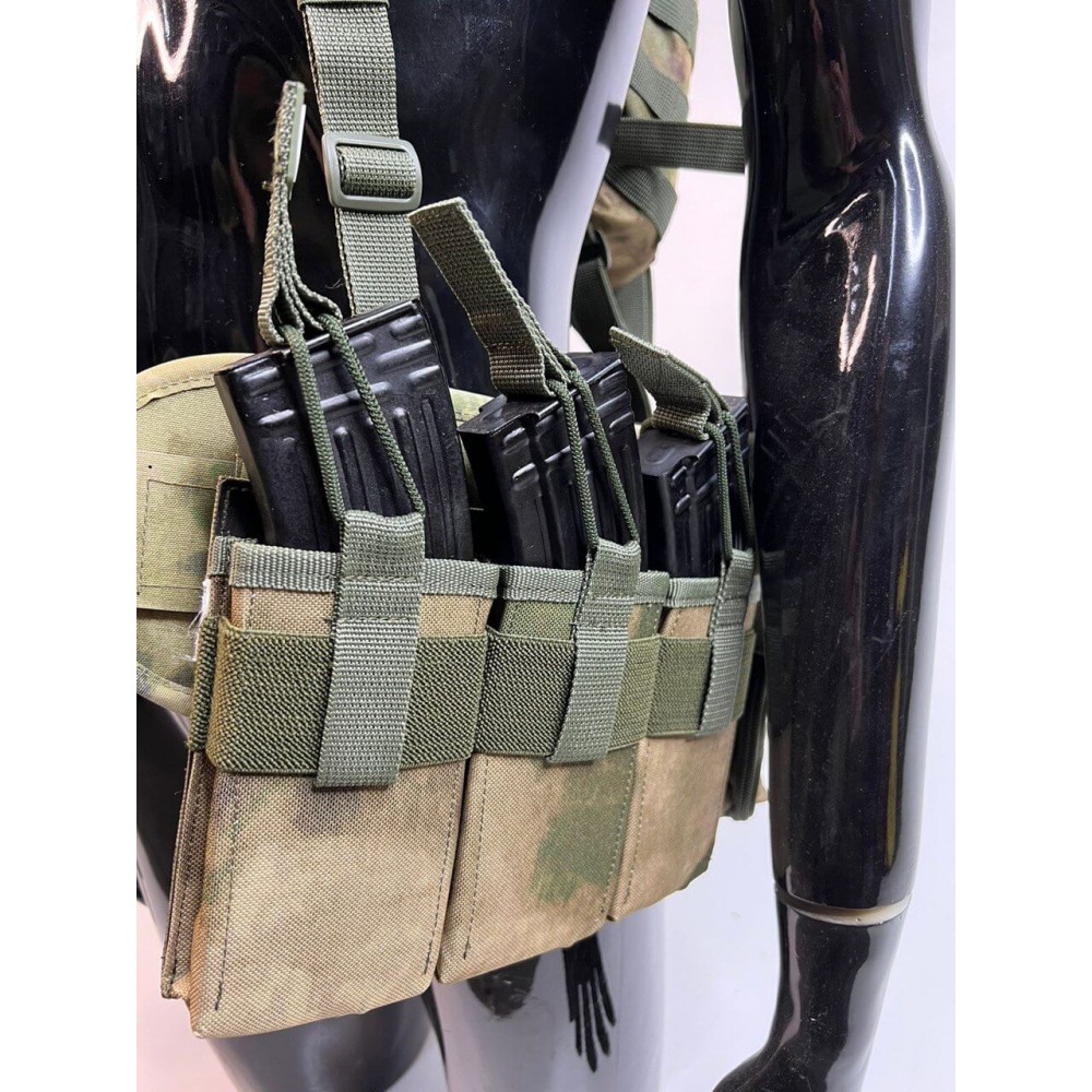 - Удобные застежки: Система имеет удобные застежки на груди и талии, что позволяет легко надевать и снимать разгрузку.