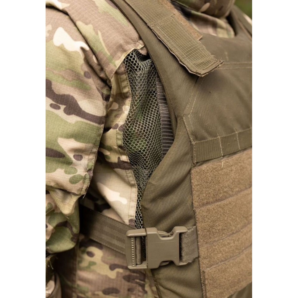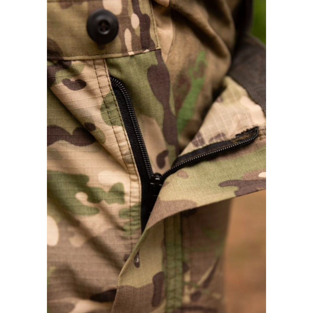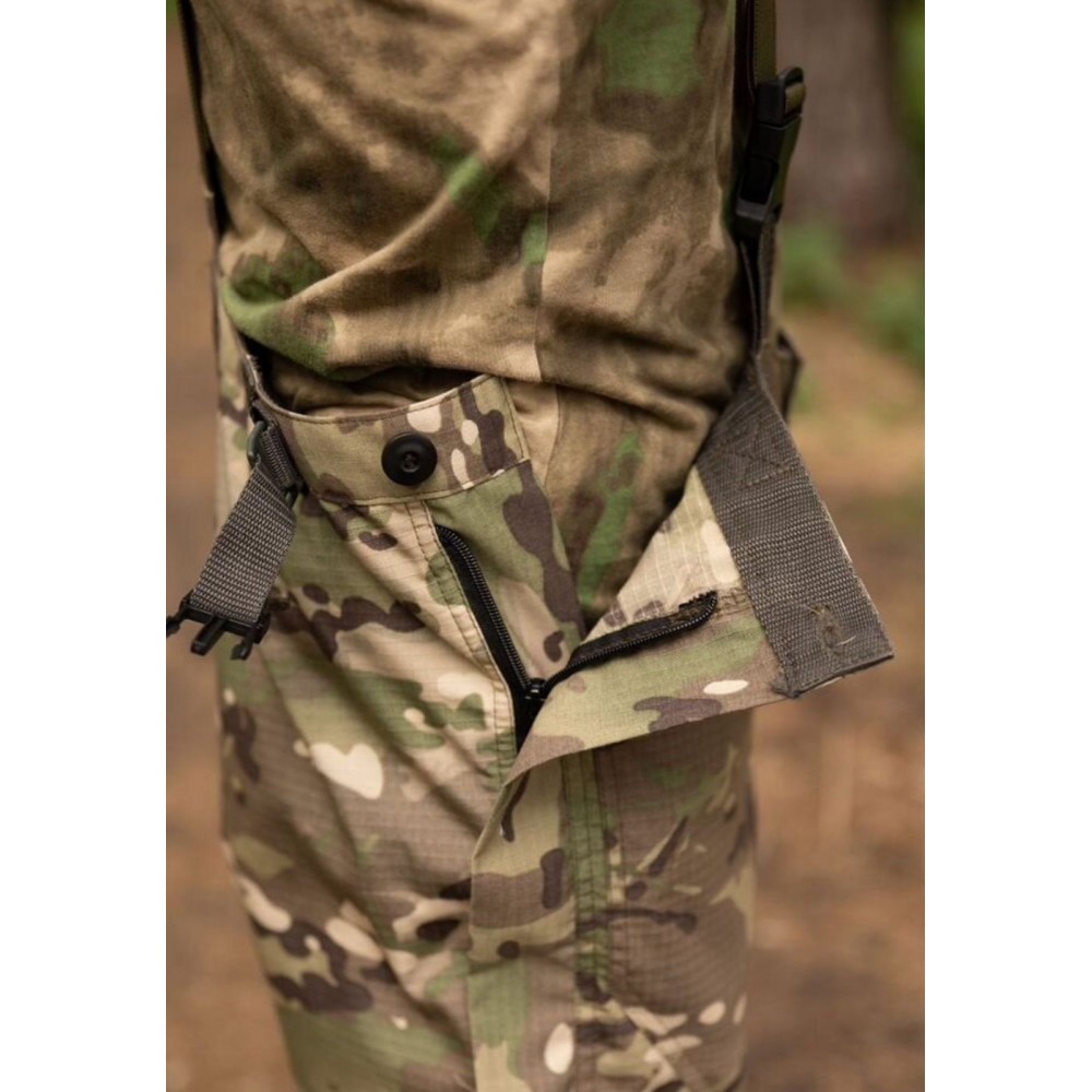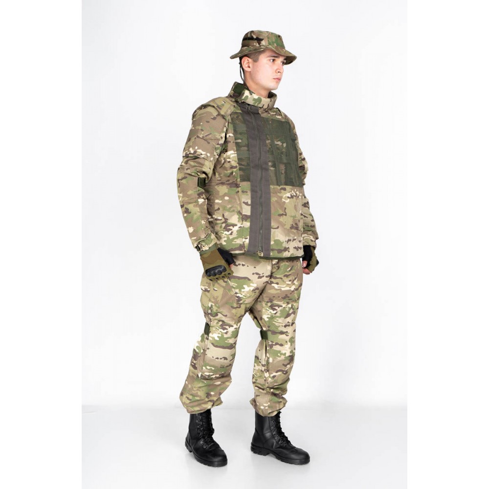 Защитный противоосколочный костюм включает куртку и брюки, изготовленные из прочной ткани Rip-Stop с плотностью 220 г/м².