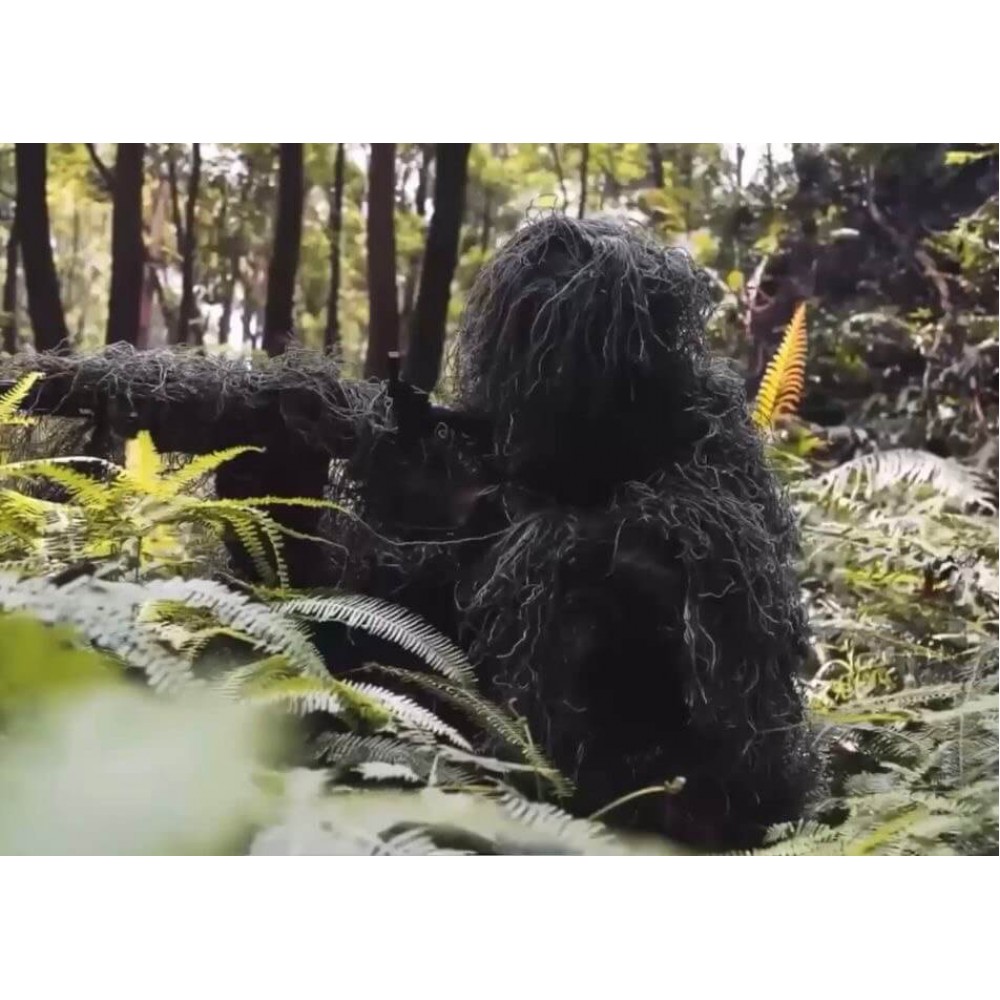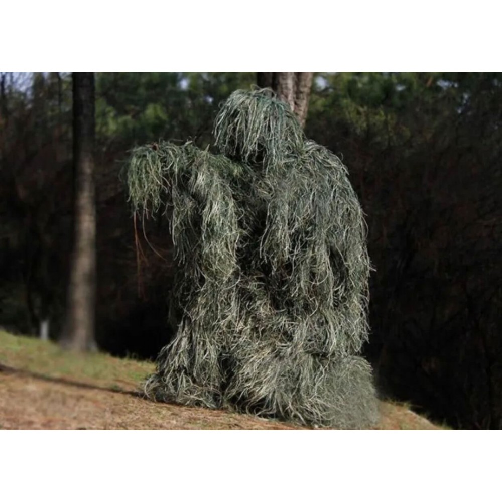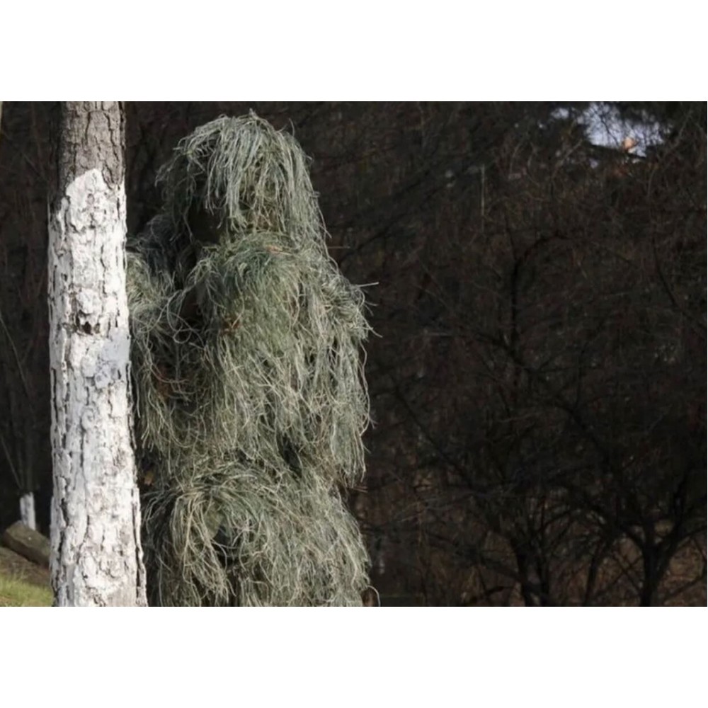 - Маскировочные свойства: Костюм имеет волокна, имитирующие растительность, что обеспечивает отличную маскировку в разнообразных ландшафтах. Он способен полностью скрыть снайпера или разведчика от наблюдения благодаря эффективной имитации окружающей природы.