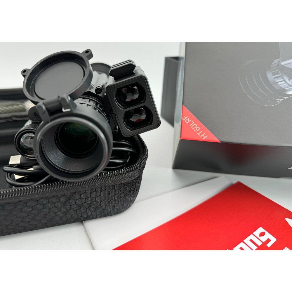 Ключевой особенностью устройства является встроенный лазерный дальномер, который обеспечивает мгновенное измерение расстояния до объекта на дистанции до 1000 метров, отображая данные в режиме реального времени на микро-дисплее. Также прицел включает баллистический калькулятор, что добавляет функциональности, и на корпусе предусмотрена Picatinny рейка для установки дополнительных аксессуаров, таких как дополнительный ИК-фонарь для улучшения видимости ночью.