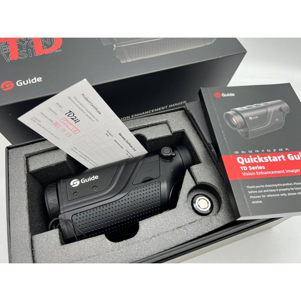 Тепловизионный монокуляр Guide TD211 легок и удобен в использовании. Он является частью второго поколения устройств серии Guide TD Gen2 и идеален для наблюдений на средних и ближних расстояниях. Модель оборудована пятью цветовыми палитрами для лучшего выделения тепловых объектов и защищена по стандарту IP66.